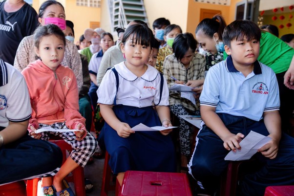 Không dừng lại ở đó, chương trình đặc biệt hướng về trẻ em – những tâm hồn thơ ngây đang cần được nuôi dưỡng bằng cả tri thức và yêu thương. 180 phần quà học tập được chuẩn bị chu đáo gồm balo, vở, bút, hộp bút, bảng bộ, compa, cùng sữa, kẹo mút và bánh snack… Những món quà nhỏ nhưng đầy ắp khát vọng về một tương lai tươi sáng, một năm học mới bắt đầu bằng niềm vui và động lực.