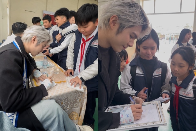 Nam người mẫu tích cực tham gia giao lưu, chia sẻ cùng các em học sinh về giá trị của năng lượng tái tạo, ý thức bảo vệ môi trường